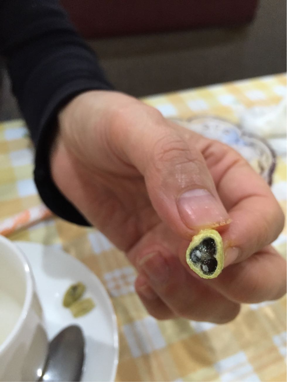インド料理屋さんによくある、お口直しの砂糖に包まれたアニスみたいなのとは似てるけど何か違います。